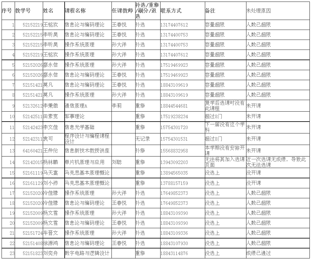 2017-2018-1银河娱乐城 退补选第一次处理结果