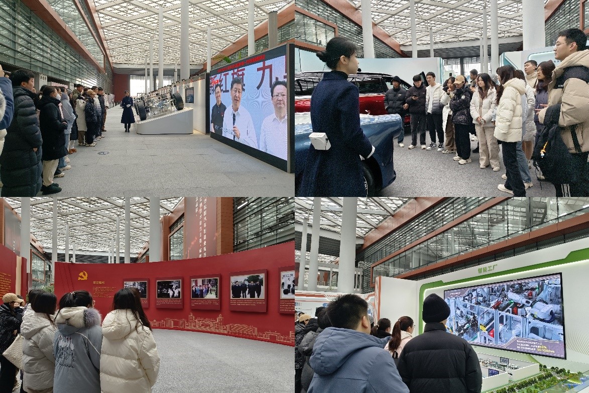 红旗汽车是中国自主品牌的代表,承载着一汽人对民族汽车工业振兴的情感寄托。七十多年来,一代又一代的一汽人薪火相传、不懈奋斗,创造了“风景这边独好”的新业绩。活动中,师生们追随习近平总书记的脚步,参观了一汽技术与整车产品展、创新成果汇报展等展厅。在这里,大家不仅看到了红旗品牌的最新车型与创新技术,更深刻感受到了总书记对汽车工业发展的关怀和期望。活动中,在一汽就职的校友陪同参观,与同学们交流了工作内容、晋升渠道、个人发展等方面内容。